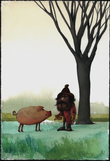 Ohne Titel. [19]92. [Aquarell / watercolor]. _. (Dieter Süverkrüp, geboren am 30. Mai 1934 in Düsseldorf. Deutscher Liedermacher, Kabarettist und Grafiker. Studium an der Werkkunstschule in Düsseldorf. Gemeinsam mit Gerd Semmer, Arno Klönne und Frank Werkmeister gründete er 1961 den pläne-Verlag). Aquarell auf Büttenpapier. innerhalb der Abbildung unten rechts von Dieter Süverkrüp in Blei signiert und datiert. Provenienz: Aus dem Nachlass des Herausgebers von Büchern zur Arbeiterbewegung, Udo Achten. Maße Blatt/Abbildung: 28,2 x 19,2 cm. Sehr gutes Exemplar. Watercolor on handmade paper. Signed and dated in lead by Dieter Süverkrüp in the image bottom right. Provenance: From the estate of the publisher of books on the labor movement, Udo Achten. Dimensions sheet/image: 28.2 x 19.2 cm. Very good copy.